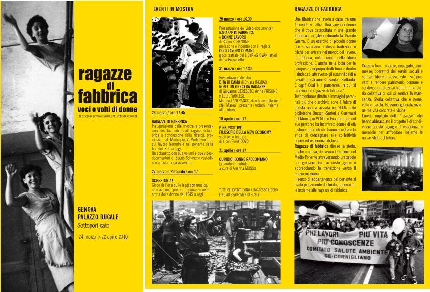 Discutiamo anche della prossima mostra "Ragazze di fabbrica", che aprirà a Palazzo Ducale nel mese di marzo, e del nostro spettacolo.